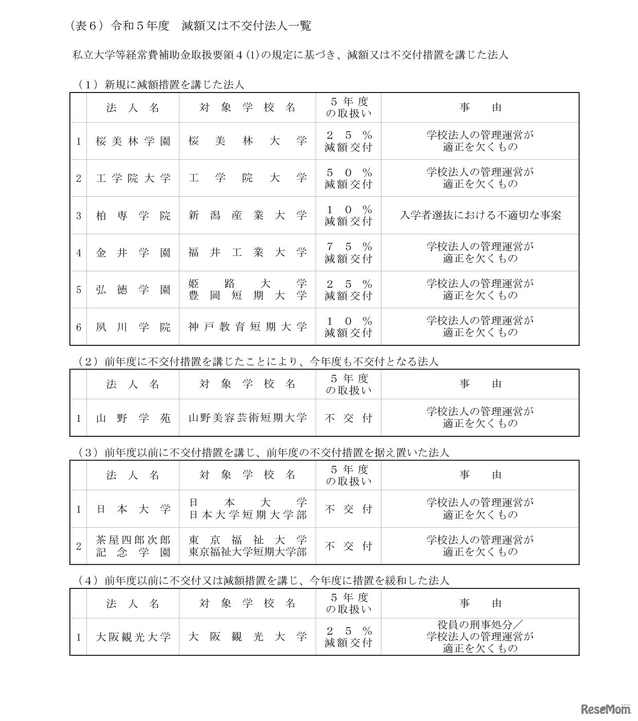 日本私立学校振興・共済事業団は2024年3月19日、2023年度(令和5年度)の私立大学等経常費補助金交付状況を公表した。2023年度の交付総額は2,976億1,697万5,000円。新規に桜美林大学など6法人が、学校法人の管理運営が適正を欠くなどを事由に減額された。