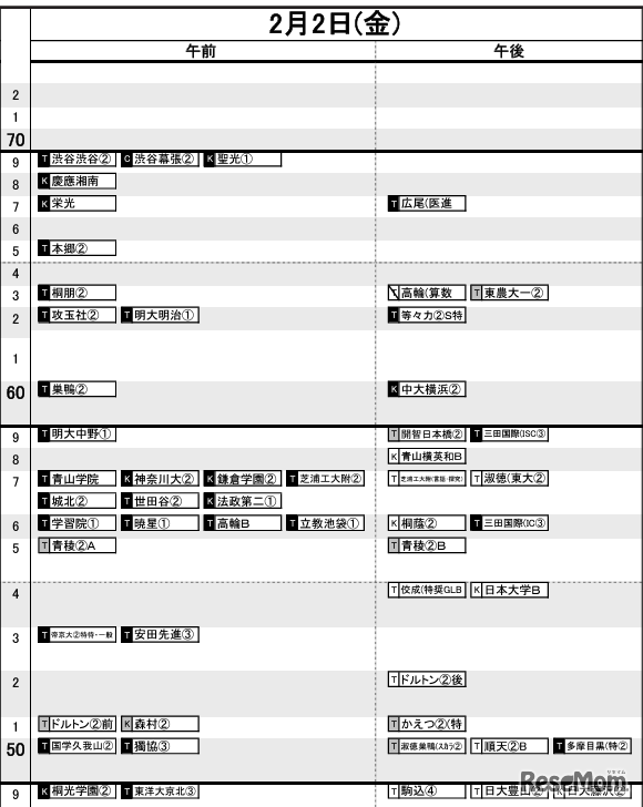 首都圏(2024年入試結果)男子2月2日