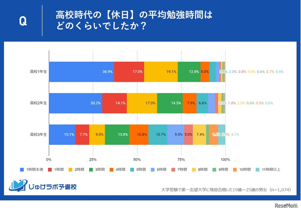 画像出典:じゅけラボ予備校 高校時代の【休日】の平均勉強時間はどのくらい?