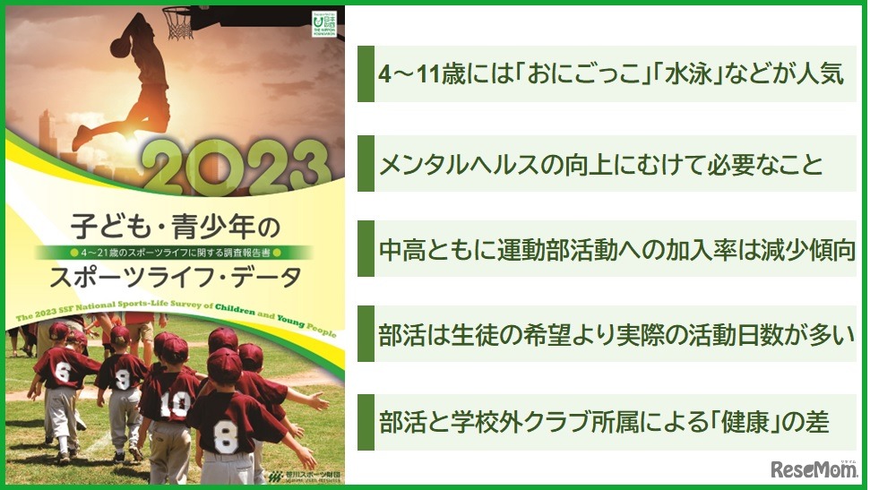 中高生の運動部活動への加入率は引き続き減少傾向にあることが2024年4月4日、笹川スポーツ財団が発表した「子ども・青少年のスポーツライフ・データ2023」の最新の調査結果から明らかとなった。運動部の地域移行には、中高生の健康・活動ニーズを踏まえた取組みが重要といえる。