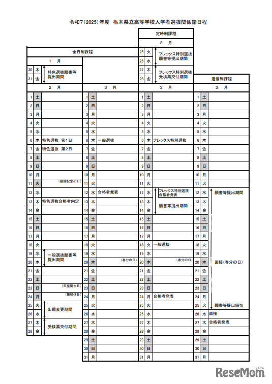 栃木県教育委員会は、2025年度(令和7年度)県立中学校入学者選考の日程と、県立高校入学者選抜の日程を発表した。県立中学校の適性検査などは2025年1月11日、県立高校の一般選抜における学力検査は3月6日に実施する。