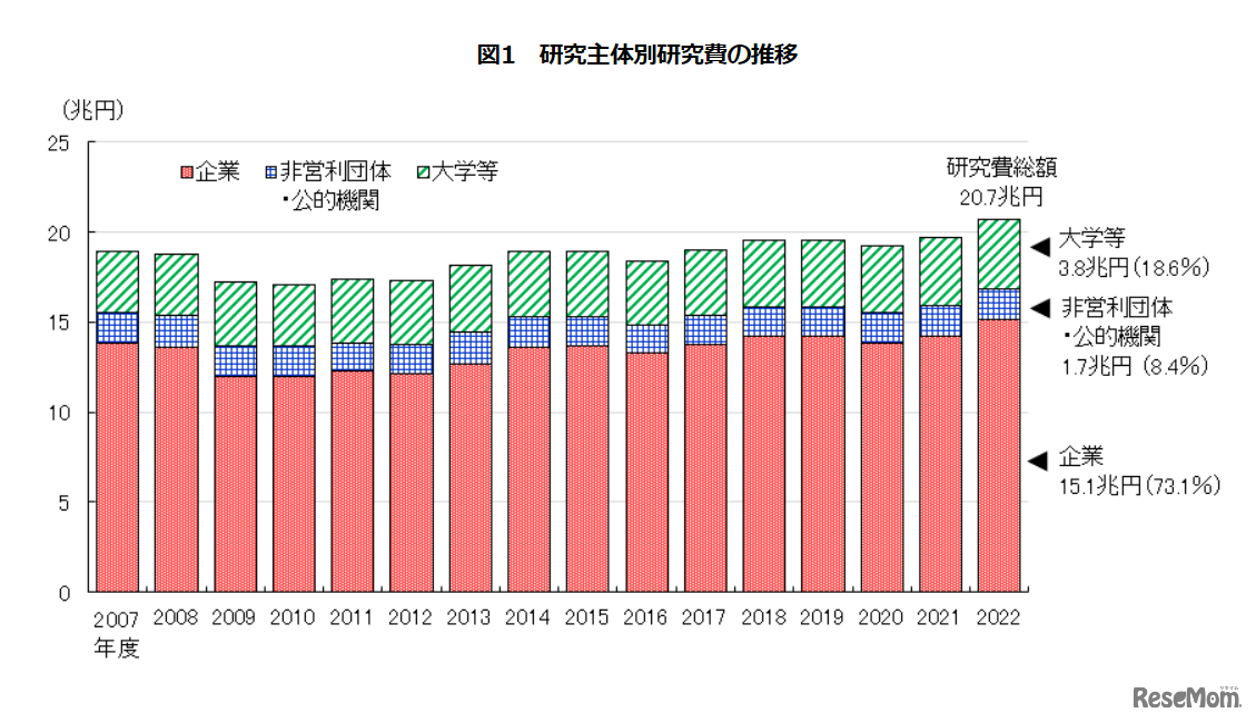 2022年度の科学技術研究費の総額が、過去最高の20.7兆円となったことが2024年4月12日、総務省統計局の調査結果より明らかとなった。研究者数は7年連続で増加し、女性研究者は18万3,300人で過去最多となった。