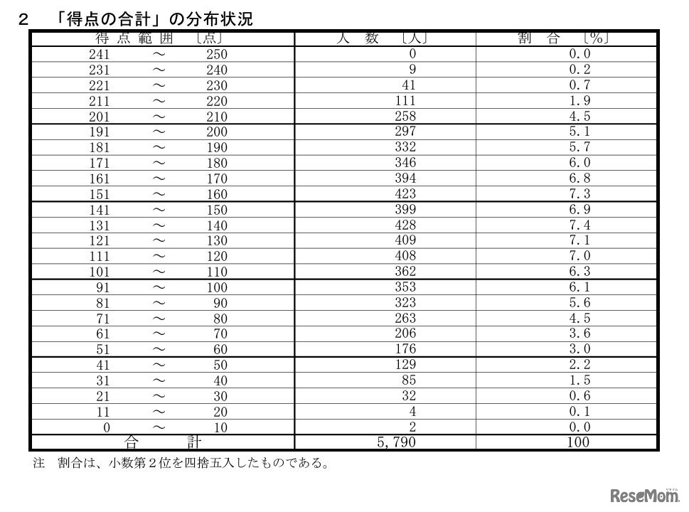 画像出典:山口県教育委員会 「得点の合計」の分布状況