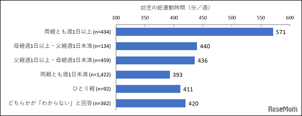 画像出典:笹川スポーツ財団 両親の運動・スポーツ実施頻度と幼児の園外での総運動時間