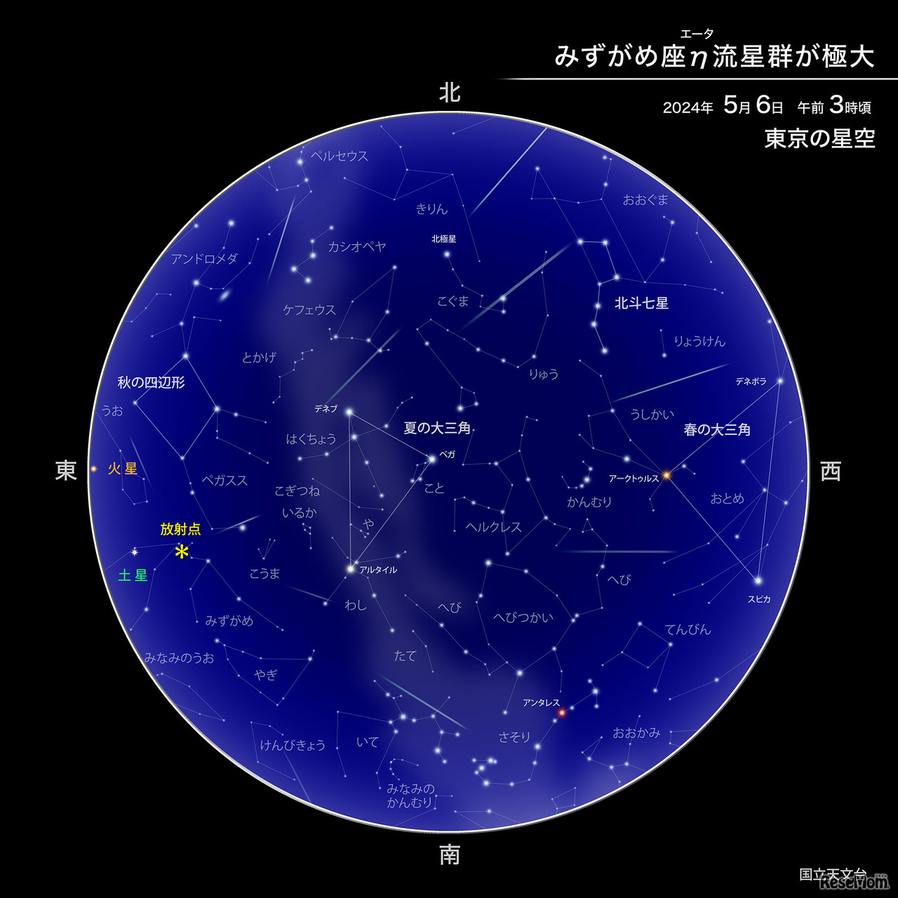 みずがめ座η(エータ)流星群の活動が、2024年5月6日の午前6時ごろに極大を迎える。見ごろは5月5日と6日の夜明け前。天気に恵まれれば、今年は月明かりの影響がほとんどない中で観察できそうだ。