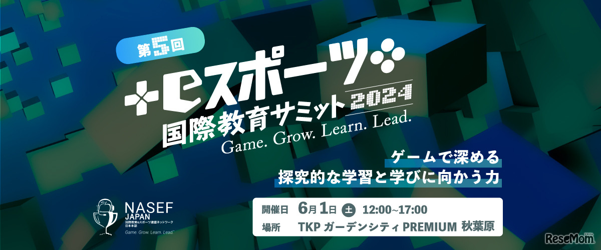 NASEF JAPAN(ナセフ ジャパン)は2024年6月1日、「第5回NASEF JAPAN eスポーツ国際教育サミット」をTKPガーデンシティPREMIUM秋葉原にて開催する。テーマは、ゲームで深める探究的な学習と学びに向かう力。参加費無料。