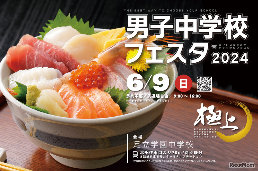 東京の私立男子中学校が参加する「第22回東京私立男子中学校フェスタ2024」が、2024年6月9日に開催される。会場は北千住駅より徒歩1分の「足立学園中学校」。予約不要、入退場自由。