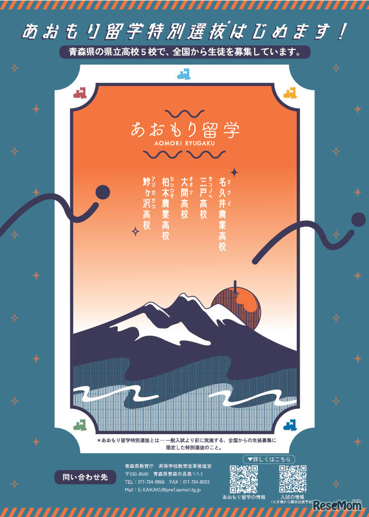画像出典:青森県教育委員会 全国からの生徒募集「あおもり留学」チラシ