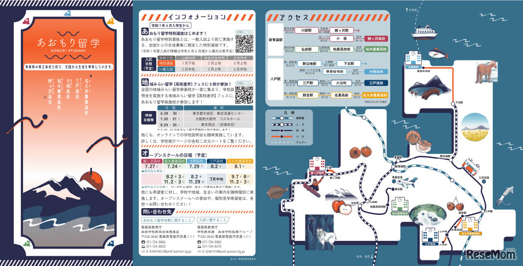 青森県教育委員会は2024年5月7日、2025年度の県立高校入試から、全国からの生徒募集「あおもり留学」に一般入試より前に実施する特別選抜を導入すると発表した。対象校は、鰺ヶ沢、三戸、柏木農業、名久井農業、大間の5校。保護者の転勤や転居は要件としない。