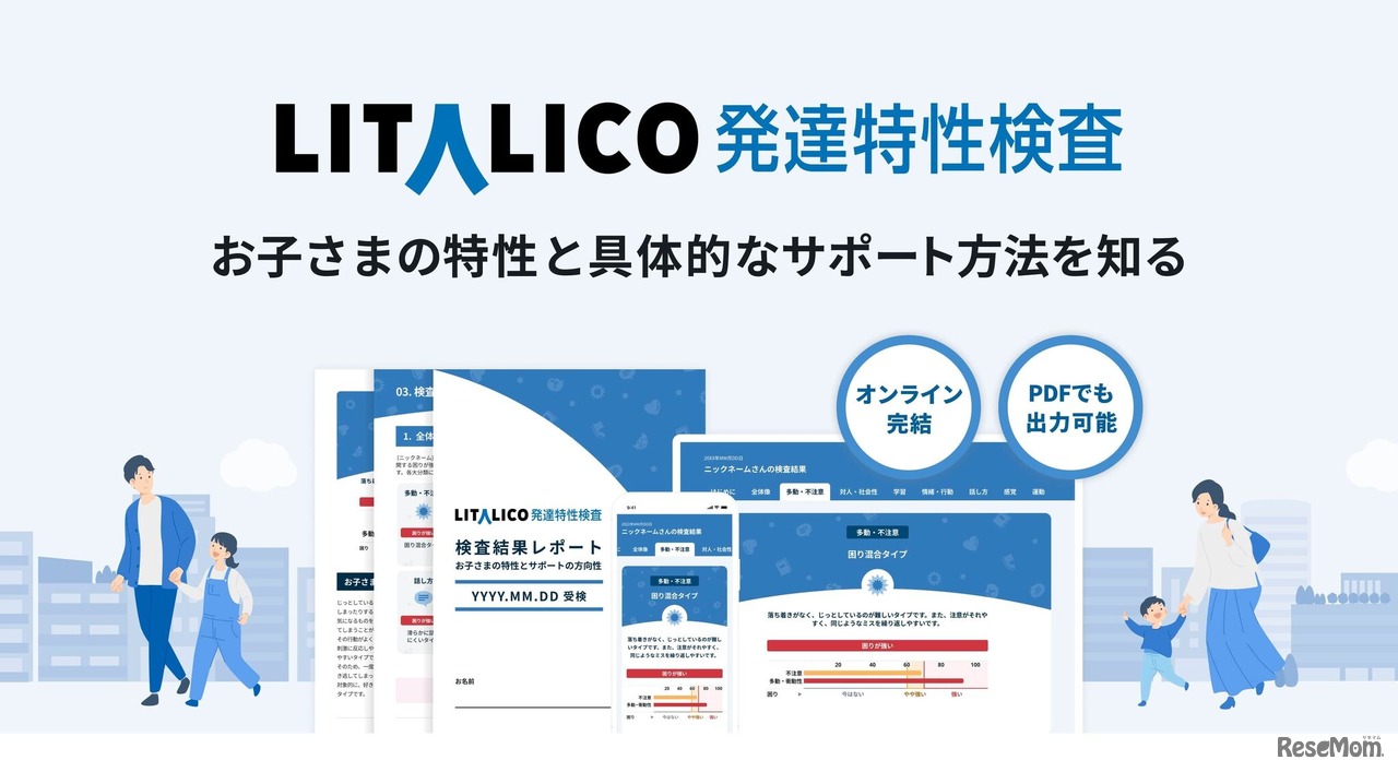 「障害のない社会をつくる」というビジョンのもと、障害者向け就労支援事業や子供の可能性を拡げる教育事業を展開するLITALICOは2024年4月、子供の発達が気になる保護者を支援するオンライン完結の検査サービス「LITALICO発達特性検査」をリリースした。検査時間約30分、2,970円(税込)で利用可能。