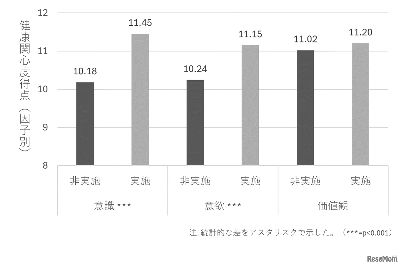 画像出典:笹川スポーツ財団 運動実施の有無による健康関心度得点(因子別)の平均値の差