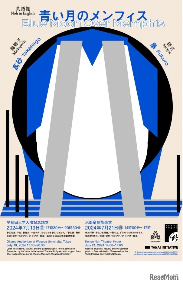 早稲田大学は、米国カリフォルニア大学ロサンゼルス校との共同連携事業である柳井イニシアティブの取組みとして、2024年7月19日に東京、21日京都にて「英語能 青い月のメンフィス(Blue Moon Over Memphis)」を公演する。参加無料。自由席。事前申込制。