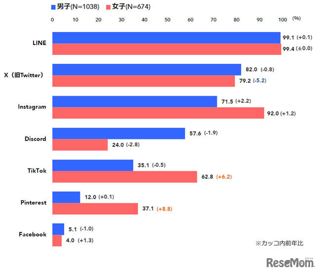 現在利用しているSNS(男女別/複数回答)