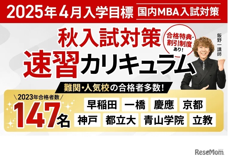 アガルートアカデミーは、2025年4月入学目標「国内MBA秋入試対策速習カリキュラム」および「冬入試対策カリキュラム」を提供開始した。早稲田、一橋、慶應、京都、神戸、都立大、青山学院、立教などの難関MBAを突破するためのカリキュラムとなる。