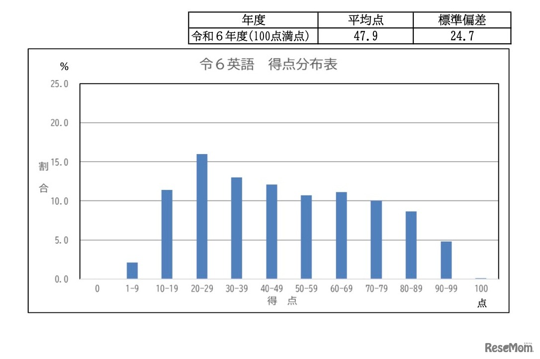 画像出典:滋賀県教育委員会 <英語>平均点・得点分布表