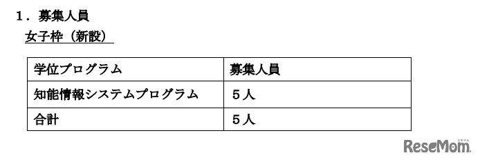 新設する「女子枠」の募集人員