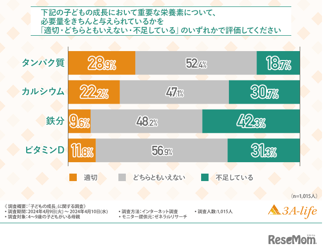 スリーエー・ライフは2024年5月16日、「子どもの成長」に関する調査結果を発表した。母親の半数が自身の幼少期と比較して運動が不足していると感じており、子供の栄養状態についても理解しきれていないことがわかった。
