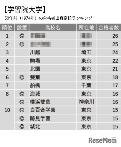 大学通信は、2024年度入試における大学合格者の高校別ランキングを特集している。「学習院大学」合格者の高校別ランキングは、3位に不動岡、4位に大宮開成、5位に浦和第一女子がランクイン。1位・2位は大学通信のWebサイトより確認できる。