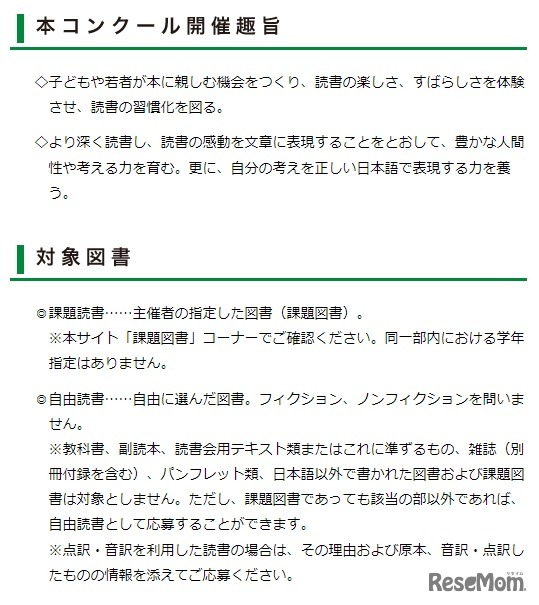 コンクールの開催趣旨、対象図書