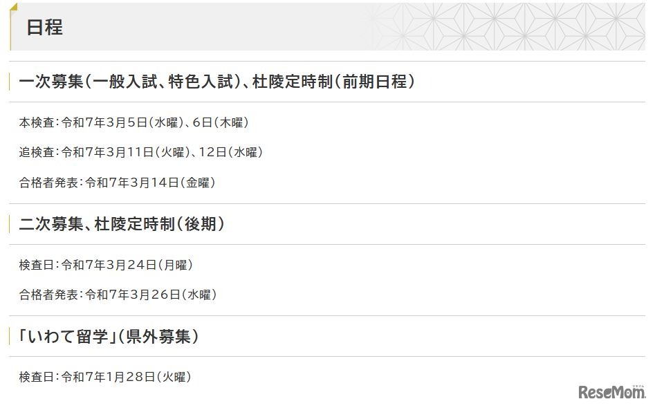 画像出典:岩手県教育委員会 令和7年度県立高等学校入学者選抜日程