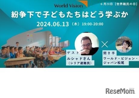 世界の子供を支援する国際NGOワールド・ビジョン・ジャパンは2024年6月13日、「世界難民の日」を前に、危機下での教育支援について考えるイベント「紛争下で子供たちはどう学ぶか」をハイブリッド開催する。事前申込制。