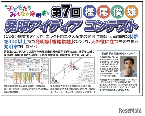 樫尾俊雄発明記念館は、小学生を対象に「第7回樫尾俊雄 発明アイディアコンテスト」の作品を募集する。4つのテーマの中から選び、オリジナルアイディアを応募する。応募期限は2024年9月20日。10名のファイナリストを選考後、発表会は11月17日にオンラインで実施予定。