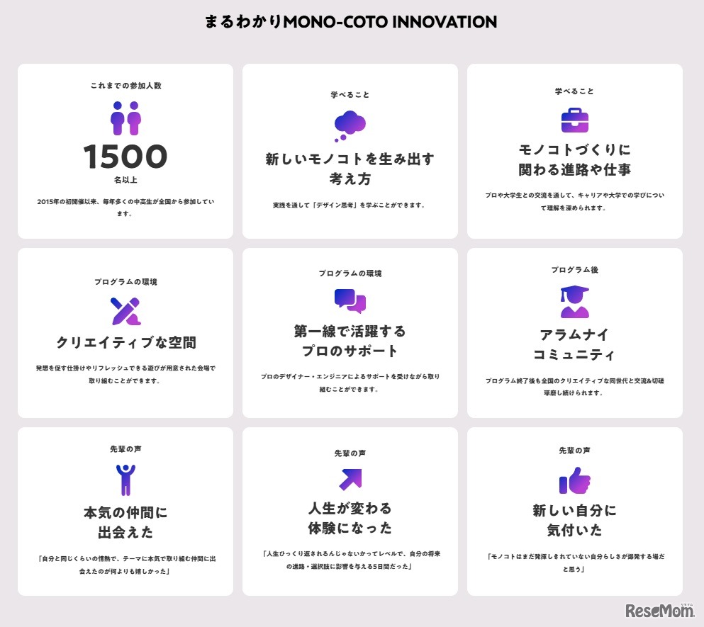 CREATION DRIVEは2024年8月、全国の中高生がデザイン思考を活用しながらテーマに対して革新的なアイデア創造に挑戦する「MONO-COTO INNOVATION 2024」を開催する。プレエントリーは6月16日午後5時、選考課題の提出は6月23日午後5時まで。募集人員は最大80名。6月8日にオンライン説明会あり。