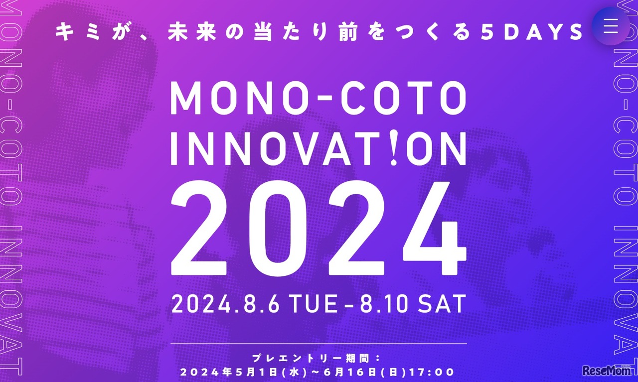 CREATION DRIVEは2024年8月、全国の中高生がデザイン思考を活用しながらテーマに対して革新的なアイデア創造に挑戦する「MONO-COTO INNOVATION 2024」を開催する。プレエントリーは6月16日午後5時、選考課題の提出は6月23日午後5時まで。募集人員は最大80名。6月8日にオンライン説明会あり。