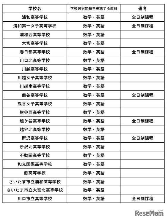 画像出典:埼玉県教育委員会 学校選択問題実施校の一覧