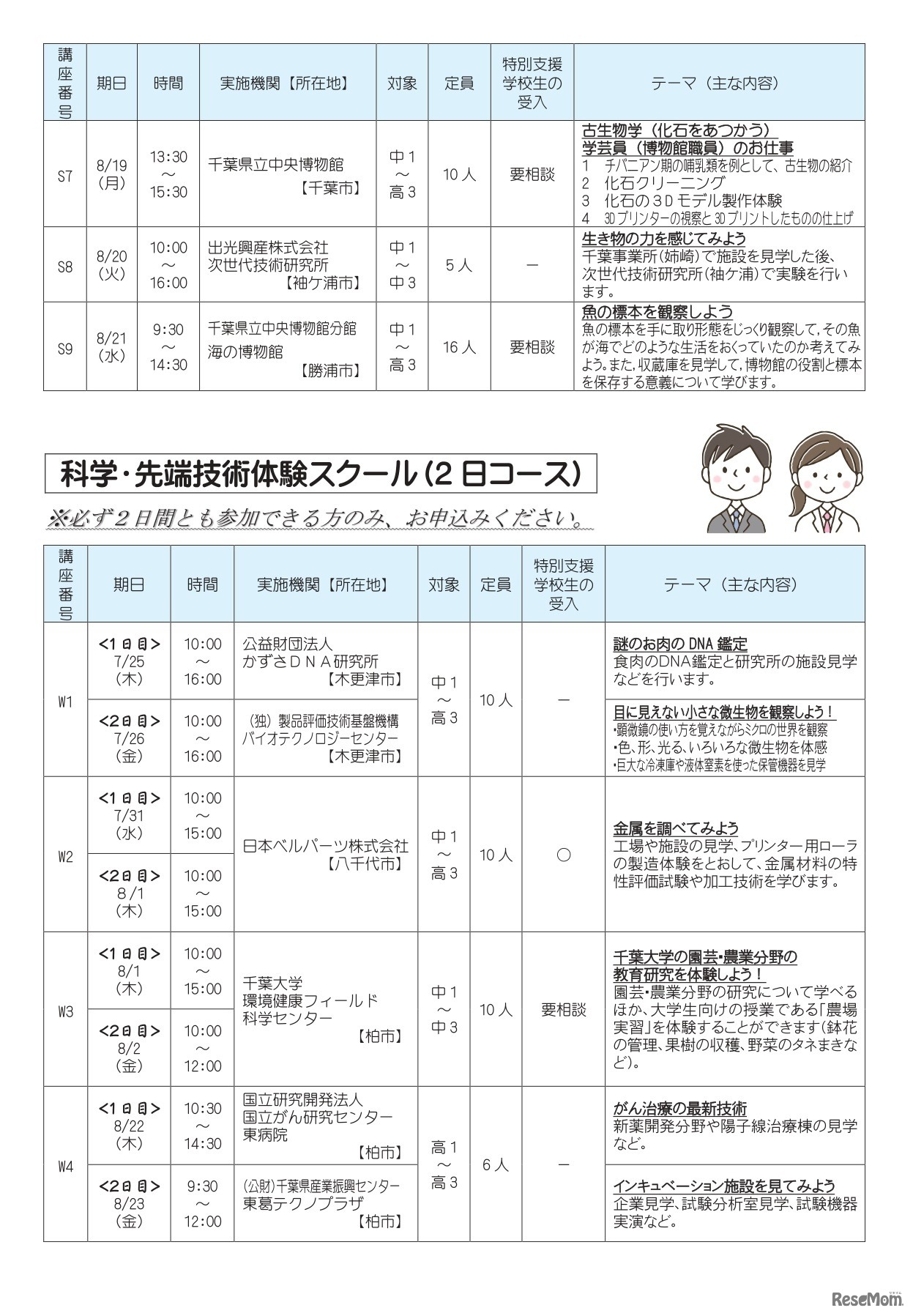 千葉県教育委員会は2024年5月27日、小中高生を対象に「千葉県夢チャレンジ体験スクール」の参加者の募集を公表した。さまざまな就業体験や科学・先端技術体験など、研究者や職業人との交流を通して職業に必要な資質や能力を学ぶ。抽選制。申込期間は6月3日から7月1日。