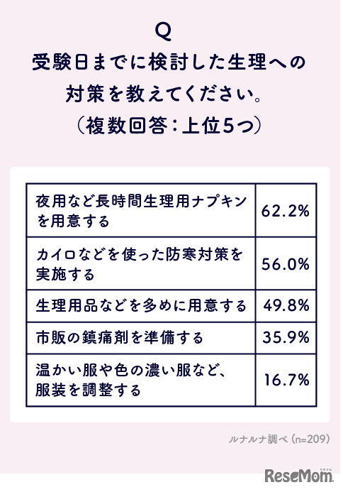 画像出典:エムティーアイ 受験日までに検討した生理への対策は?(複数選択)