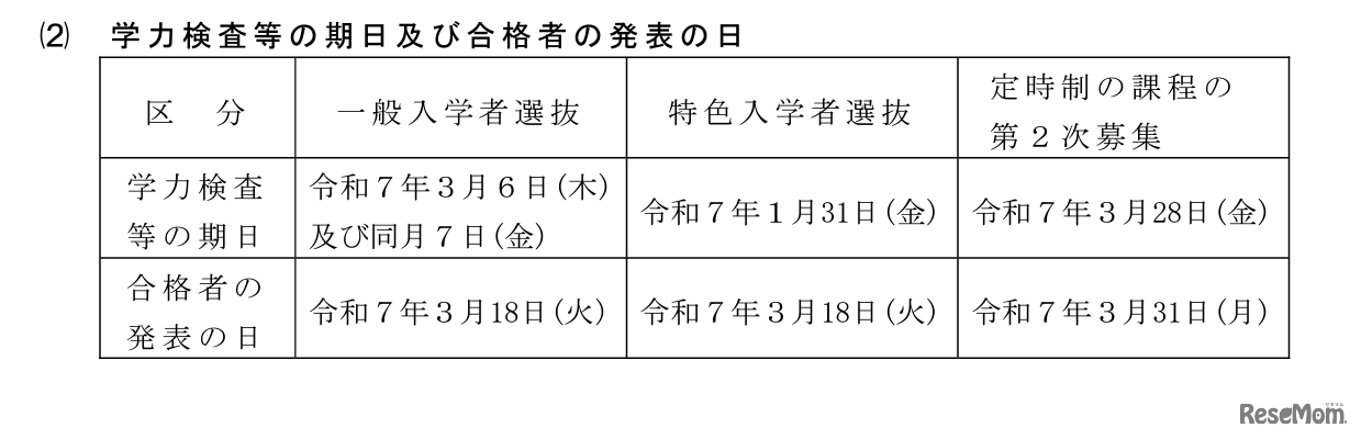 令和7年度愛媛県県立高等学校入学者選抜日程