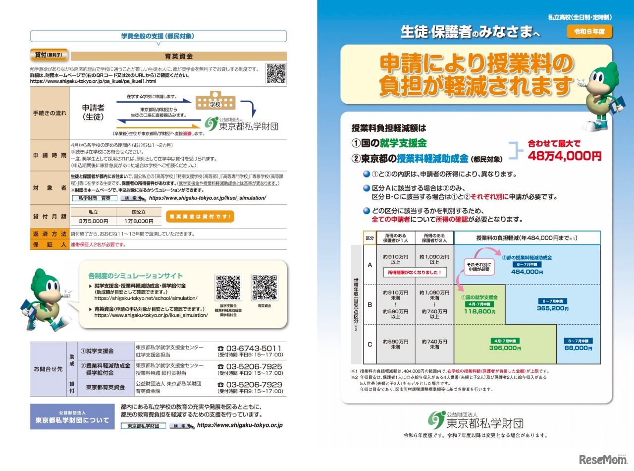 東京都は2024年6月20日より、都内私立高等学校等の授業料の一部を助成する「私立高等学校等授業料軽減助成金」の受付を開始する。2024年度からは所得制限を撤廃し、世帯年収に関わらず支援を受けられるようになる。申請はオンラインで受付。詳細は東京都私学財団ホームページまたは、在学中の各学校から保護者に知らせる。