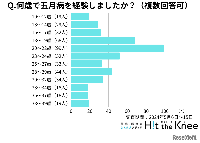 画像出典:Hit the Knee運営事務局 何歳で五月病を経験した?(複数回答可)