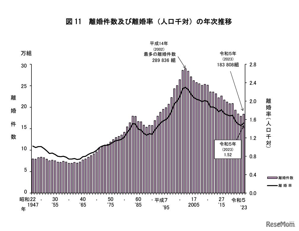 厚生労働省は2024年6月5日、2023年人口動態統計月報年計(概数)を発表した。出生数は、前年比4万3,482人減の72万7,277人で過去最少を更新。1人の女性が生涯に産む子供の数を示す「合計特殊出生率」は1.20となり、8年連続で低下した。都道府県別では、東京都がもっとも低い0.99となった。