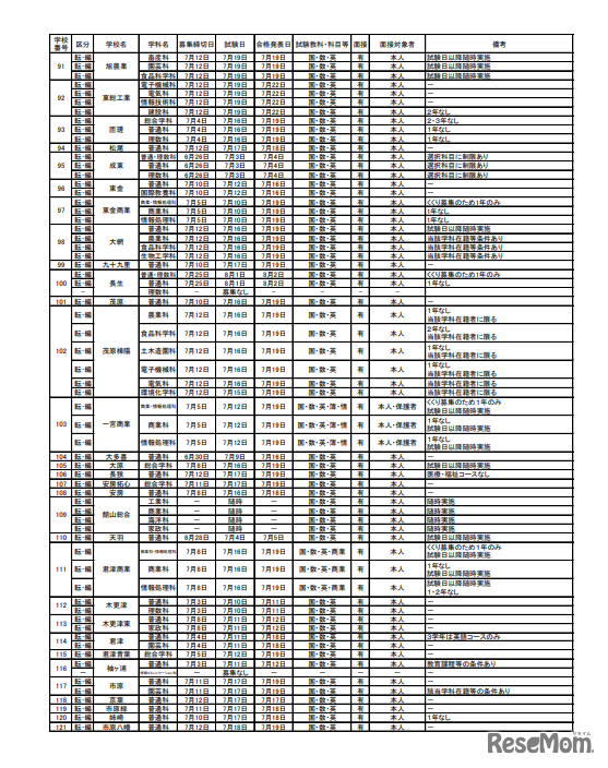 千葉県教育委員会は2024年6月18日、2024年度(令和6年度)第1学期末および第2学期始め(夏季休業およびその前後)における県立高等学校および県立中学校の転・編入学試験の実施予定について公表した。全日制高校118校、県立中1校で転・編入学試験を実施する。