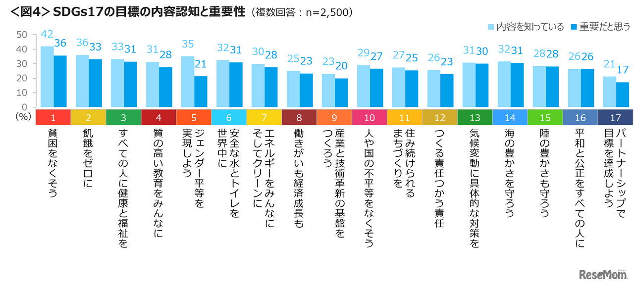 クロス・マーケティングは2024年6月18日、「SDGsに関する調査(2024年)」の結果を発表した。「ジェンダー平等を実現しよう」の認知率35%と比べて、「重要と思う」割合は21%と低いことが明らかになった。SDGsの認知率は3年連続横ばいの84%であった。
