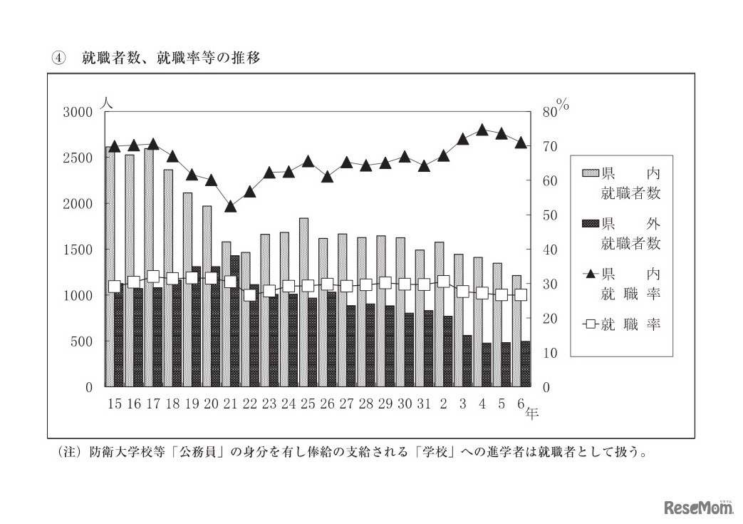 画像出典:秋田県教育委員会「令和6年3月 秋田県高等学校卒業者の進路状況調査」 就職者数、就職率等の推移