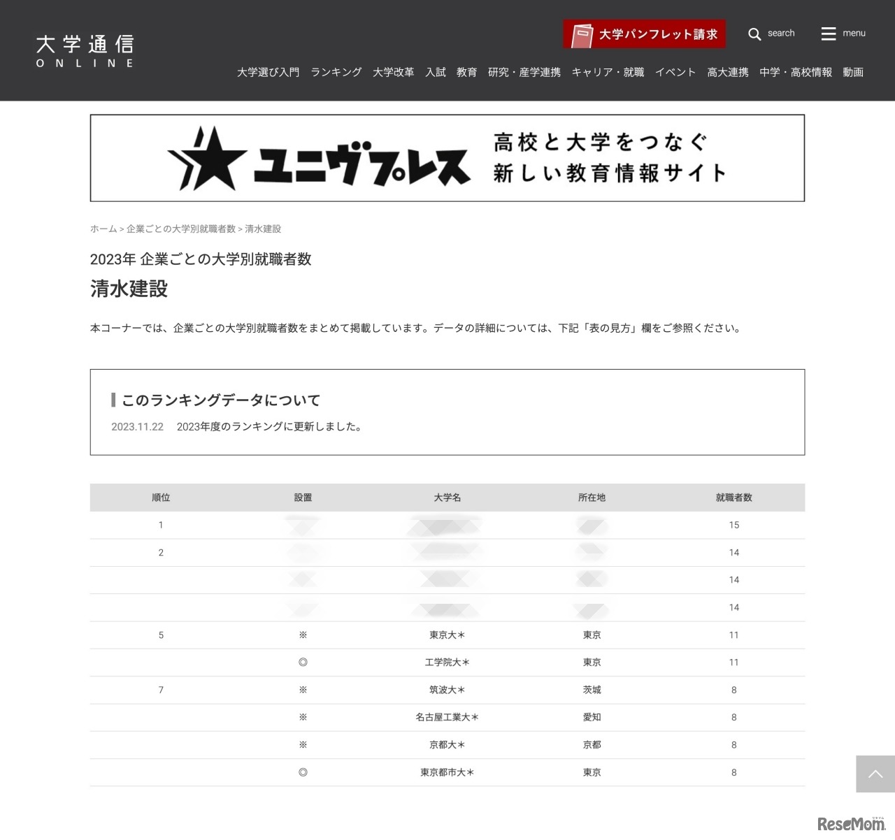 大学通信が発表している、2023年の企業ごとの大学別就職者数ランキング。第9弾は「建設」業界から、大林組、鹿島、大成建設、清水建設、竹中工務店の主要5社の大学別就職者数を紹介する。各社の3位には、東京理科大学や慶應義塾大学、早稲田大学などがランクイン。1位・2位は大学通信のWebサイトから確認できる。