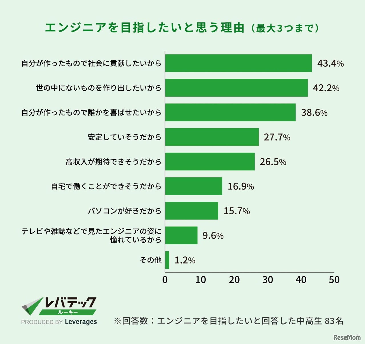 エンジニアという職業について、中高生の56.7%が「名前は知っているが、どんな仕事をしているかは知らない」と回答していることが2024年7月30日、レバテックルーキーの調査結果から明らかになった。憧れる職業は「社会に必要とされている仕事」が最多となった。
