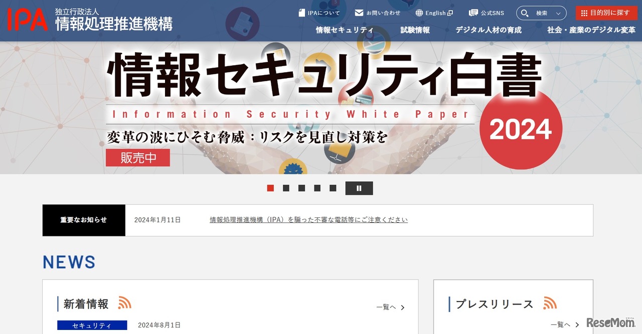 IPA(情報処理推進機構)は2024年8月1日、お盆や夏休みなどの長期休暇における情報セキュリティに関する注意を発表した。SNS投稿の注意点や、偽の警告に遭遇した場合や不審なメールに対する対応方法のほか、被害に遭った際の相談先なども掲載している。