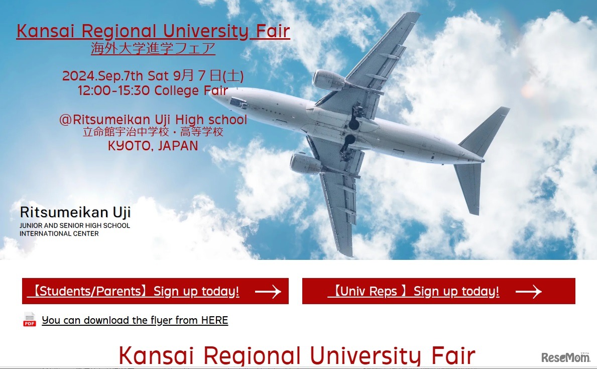 立命館宇治中学校・高等学校は、国内外の大学約100校を招いた「海外大学進学フェア」を2024年9月7日に開催する。海外大学への進学に興味のある人は誰でも参加できる。参加費は無料。申込Webフォームより申込む。