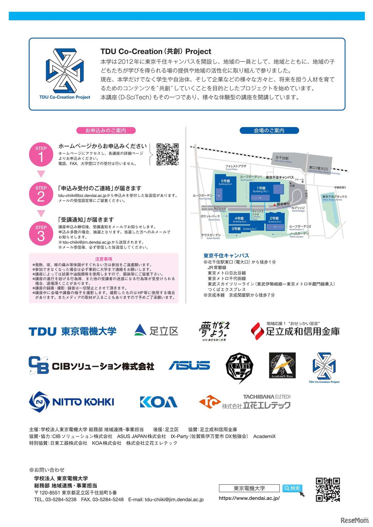東京電機大学は2024年10月から2025年3月にかけて、理科や科学に興味がある小学生に向けた体験型ワークショップ「『TDU 社会・地域連携事業 公開講座 D-SciTechプログラム』~未来のエンジニアのために~」を東京千住キャンパスで開催する。小3~6年生対象、参加費無料。