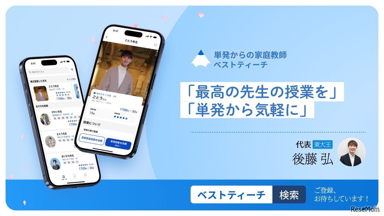 bestieeは「東大王が自宅で指導!?単発授業体験キャンペーン」を開催している。対象は、東京近郊在住の小中高生。応募は2024年9月23日まで。当選者15名に、90分1万円の特別価格で東大王によるマンツーマン授業を提供する。