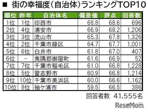 幸福度&住み続けたい街・千葉県版…4年連続1位は? 2枚目の写真・画像