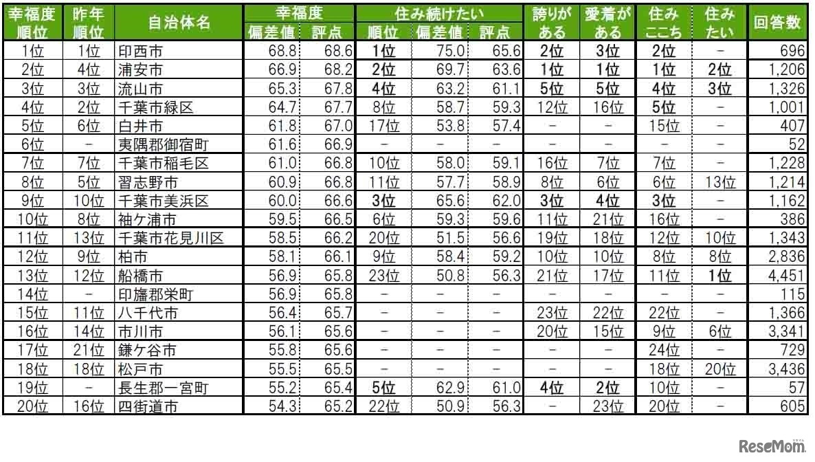 幸福度&住み続けたい街・千葉県版…4年連続1位は? 6枚目の写真・画像