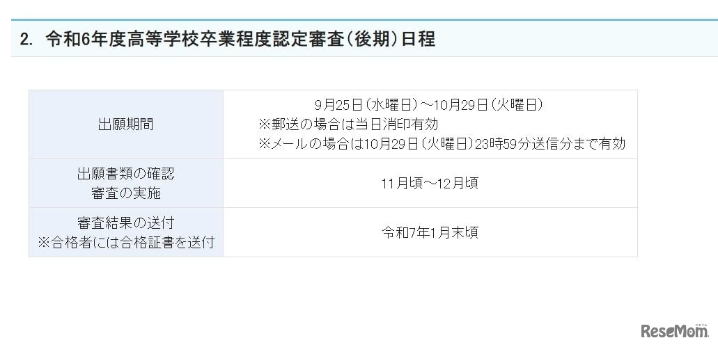 画像出典:文部科学省 令和6年度高等学校卒業程度認定審査(後期)日程