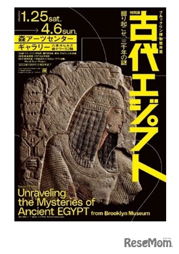ブルックリン博物館、朝日新聞社、東映、日本テレビ放送網は2025年1月25日より、「ブルックリン博物館所蔵 特別展 古代エジプト」を森アーツセンターギャラリーで開催する。彫刻、棺、宝飾品、陶器、パピルス、人間やネコのミイラなど約150点の遺物が展示される。2024年11月よりチケット販売予定。