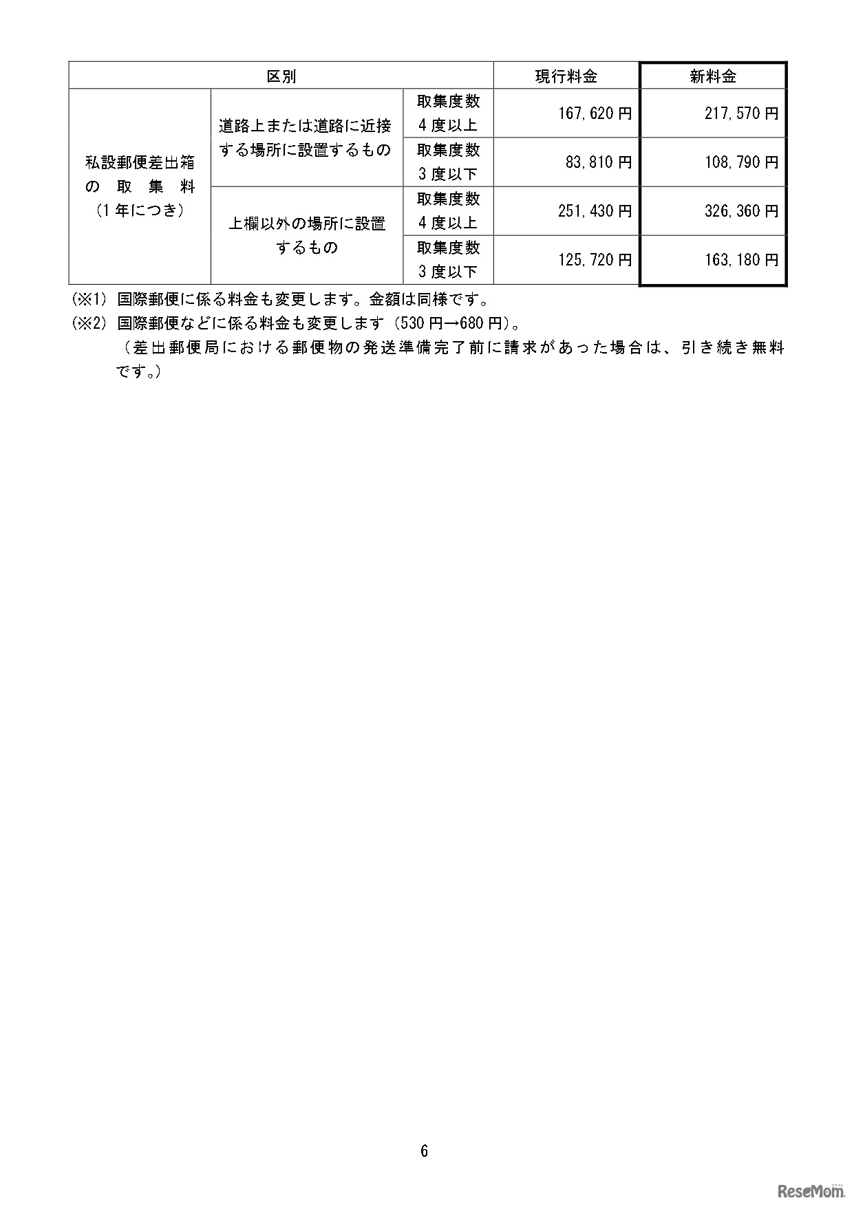 画像出典:日本郵便 変更前後の料金の一覧