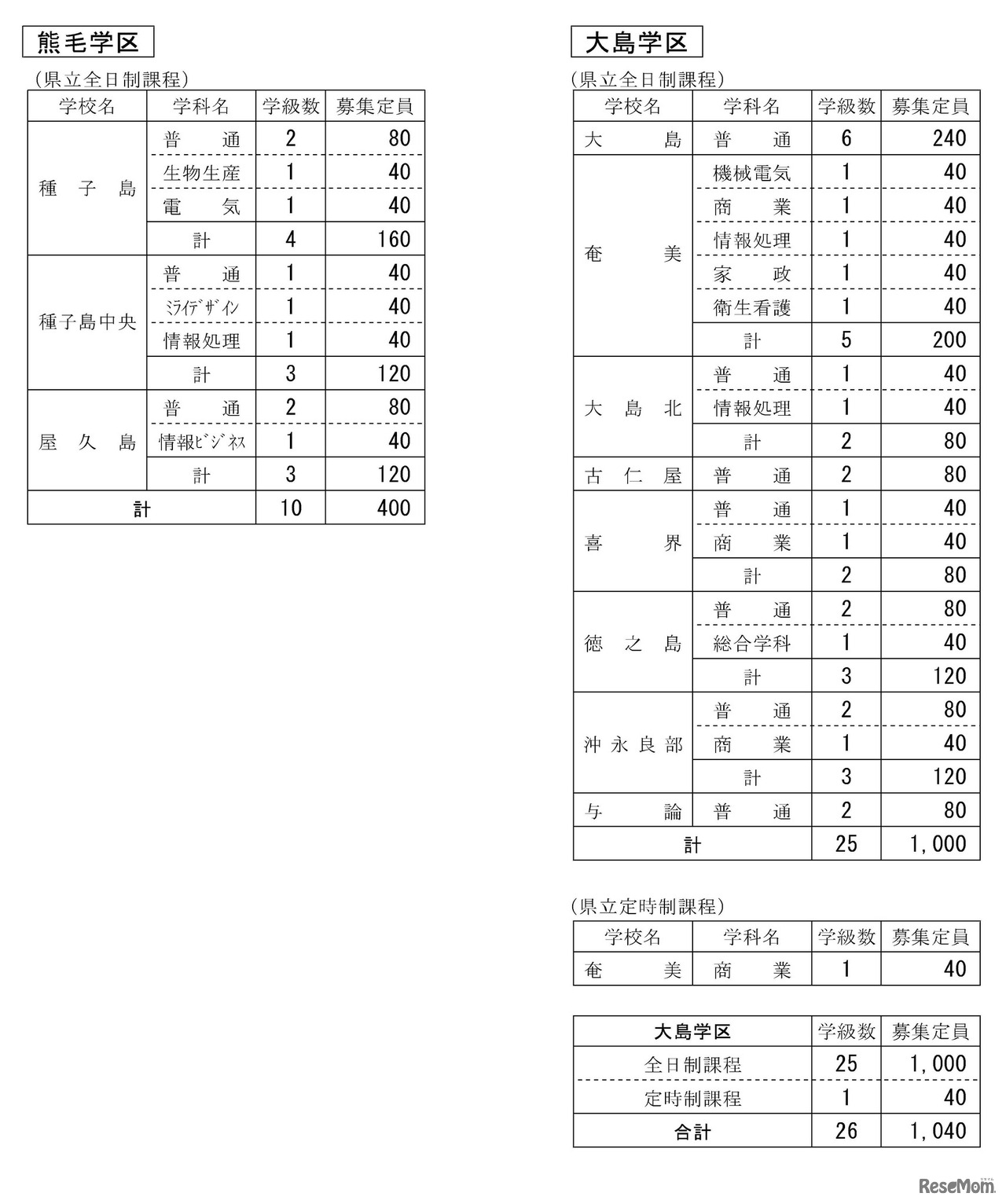 画像出典:鹿児島県教育委員会 令和7年度公立高等学校生徒募集定員